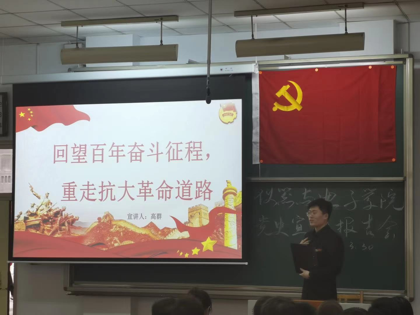 在11206H教室举办专题党史宣讲报告会。邀请学校青春宣讲团宣讲人高群为我院学生党员做了以“回望百年奋斗征程,重走抗大革命道路”为主题的党史宣讲。
