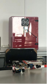 作品名称: 多功能消防报警小车 获得奖项: 全国计算机大赛优秀奖 参赛队员: 侯高普 徐泽辉 田聪颖 作品简介: 基于stm32的检测消防小车,首先车身部分,由STM32F103rctc控制系统,用亚克力拼接车体构架,14.8v航模电池供电,L298N驱动795大功率电机完成小车的行驶。 其次,小车装备MQ-2烟雾气敏传感器,多方位火焰传感器及单总线数字温湿度传感器用于收集信号传给最小系统板,若收到信号,则有信号程度控制喷壶调节空气及控制火灾。 此外,小车还装备蓝牙,超声波红外,便于操控小车及向终端反馈小车位置,编写代码调试,完善循迹,远距离遥控及惯性导航等功能。完成对火焰及烟雾的识别对比,然后对输入的信号进行处理。例如,在小车检测范围发现可疑源点,对此地进行信号的收集,监测是否形成火源,对获取的信号,确定火源的程度,利用喷壶洒水降低火源危害。在小车工作的过程中,可利用温湿度传感器检测空气湿度,对周围空气进行自动加湿,达到舒适的程度,在一定程度上预防火灾。 车体内部配置有蜂鸣器,湿度传感器或温度传感器。车体周身环绕多个LED灯,用于遇火灾报警以及夜晚警示和照明作用,在一定程度上美化了外观,增加车体稳定性和美观性。 该小车主要用于有一定固定路线的火灾隐患区的巡逻,在巡逻过程中,空气湿度过低,则对空气适当加湿,检测到火源时,使用蜂鸣器报警并车身周围的灯会变为红色,以便及时控制火灾。 |