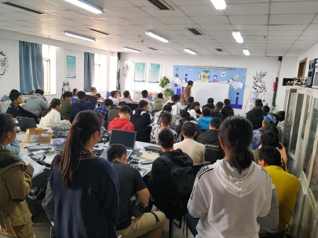 创新精英研究院机器人创新实验室。张啸天同学在上午七点在主楼1308教室进行了C语言和51单片机的培训,培训于上午7:00开始。结束于上午9:00。期间,双方互动,同学提问,培训进行的非常顺利