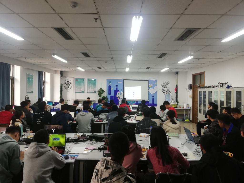 创新精英研究院机器人创新实验室。张啸天同学在下午四点在主楼1308教室进行了51单片机数码管,中断和定时器的培训,培训于下午4:00开始。结束于下午5:30。期间,双方互动,同学提问,培训进行的非常顺利。