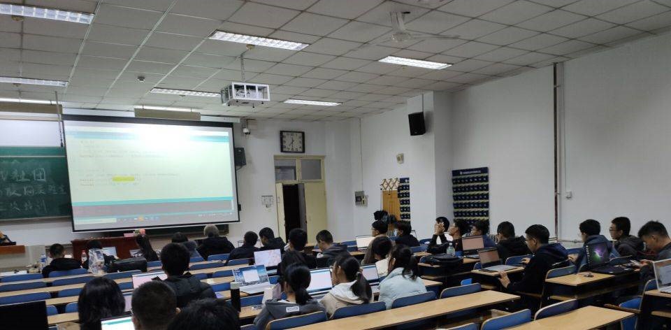 同学们大部分带着电脑,认真听讲,亲身实践,本节课已经有些难度,同学们积极问学会学长问题并得以解决。也期望同学们都从此次培训获得收获。