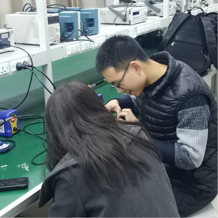 先对同学们进行了理论培训,首先声明了实验室的基本要求与安全须知,随后介绍了焊接简介,操作要求,板子焊接情况以及如何焊接。之后将同学分散在三个实验室,由数字信号实验室的学姐学长进行焊接演示。经过紧张的时间,同学们都学会了焊接并将板子焊接完成,同时测试板子情况显示良好,由此,焊接培训顺利开展并取得圆满成功。