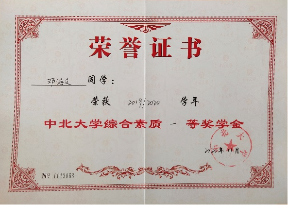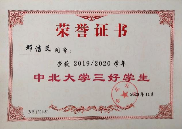 综合素质一等奖学金、“三好学生”荣誉称号,获两年威尼斯人