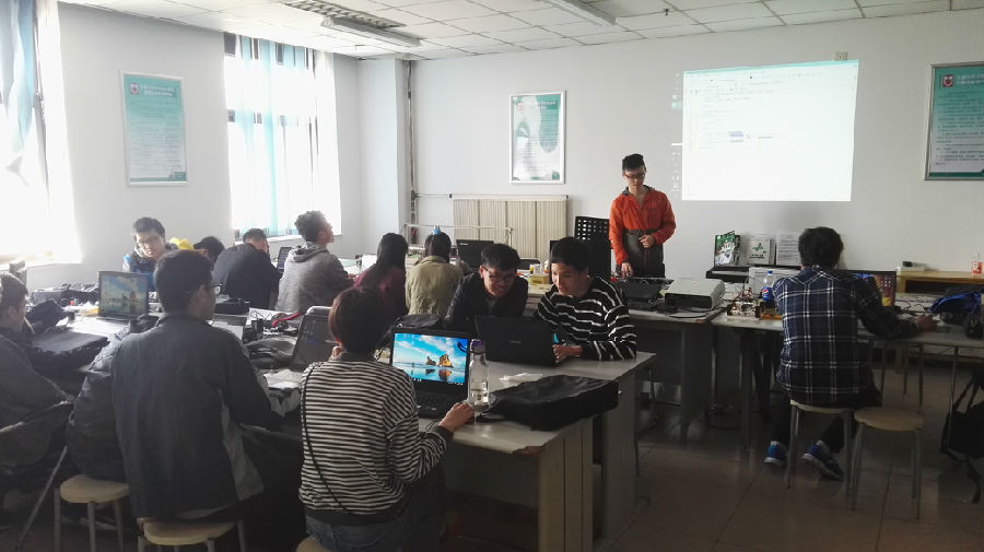 2017年4月23日上午9点,数字信号创新实验室大一管理员培训在主楼1305开始。本次培训的主讲人是实验室主席官熙皓,培训内容是介绍FPGA以及简单功能的实现。官熙皓说到培训FPGA的意义,基础是在管理员在大一一年的学习中已经掌握了51单片机以及编程的基本内容,管理员已经有实力接触更有挑战性、更有实际应用价值的技术了。官熙皓用生动形象的语言揭示了FPGA和之前培训的开发板的不同之处,希望培训可以让大一管理员了解并应用FPGA。最后,大一管理员实现了流水灯的点亮,为本次培训画上圆满句号。