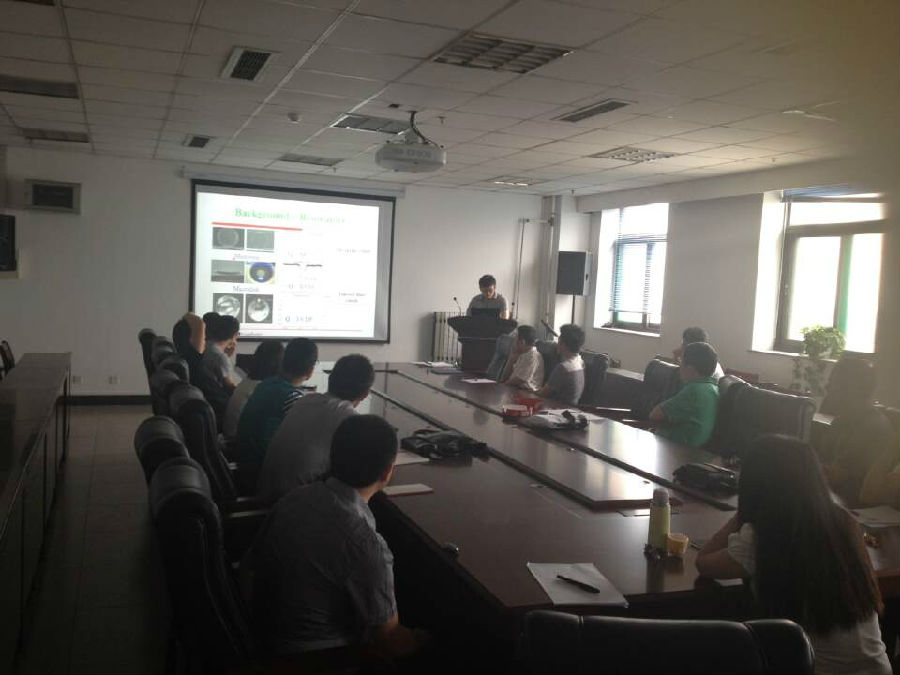 此次学术会议采用全英文的形式,由郭浩博士和谢成峰博士结合自己博士研究课题,分别进行了《Chip integrated solid state NMR sensing technology: Fluorescence collection》和《MOMES GYROSCOPE:CRIT improved the sensitivity and active gain resonator simplified the system》两个英文学术报告。