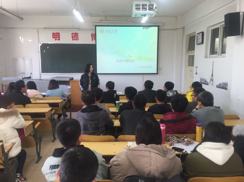 12月5日,下午2.30,15060241班在戴萧嫣班主任的组织下在十号楼10206教室展开了德育中期答辩。本次答辩的目的是:对过去大学生活取得的成就、获得的经验教训、提炼的心灵感悟等进行回顾、梳理和反思。反观前期的大学生活经历,对以后的大学生活进行思考、展望和规划。这也给了给平时忙于学业的同学们提供了一个认真地梳理和审视自己的学习生活经历和思想感受的机会。