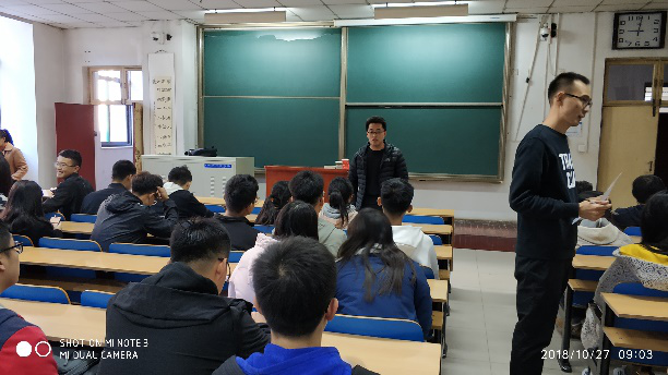2018年10月27日上午九点,赵锐,杜芳芳,郭浩,李中豪四位成长导师召集了所有16、17和18级的学员于主楼11105H教室进行了一次跨年级跨班级的师生交流沟通活动。