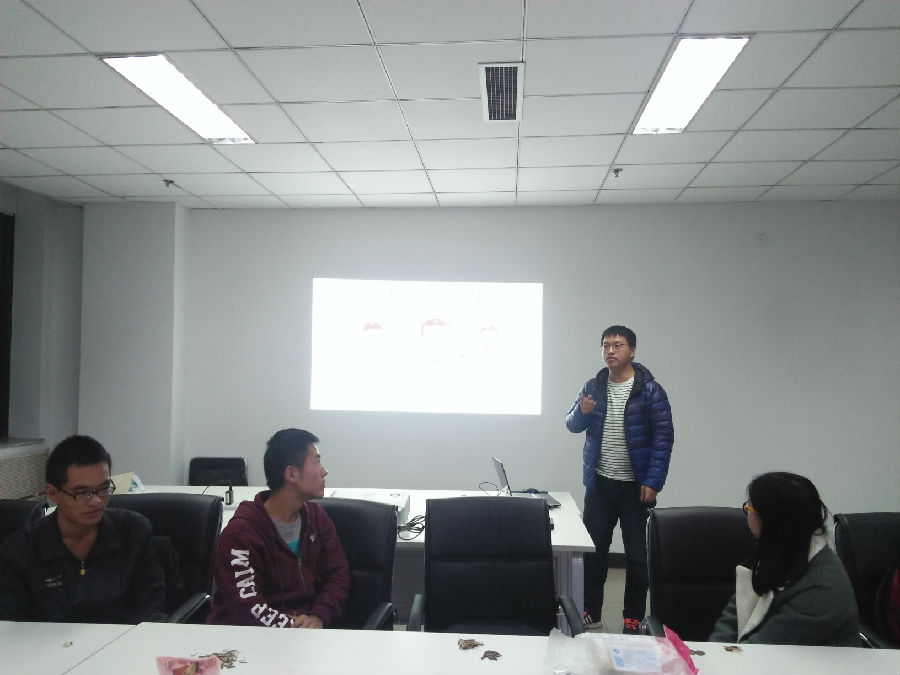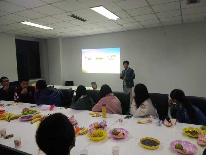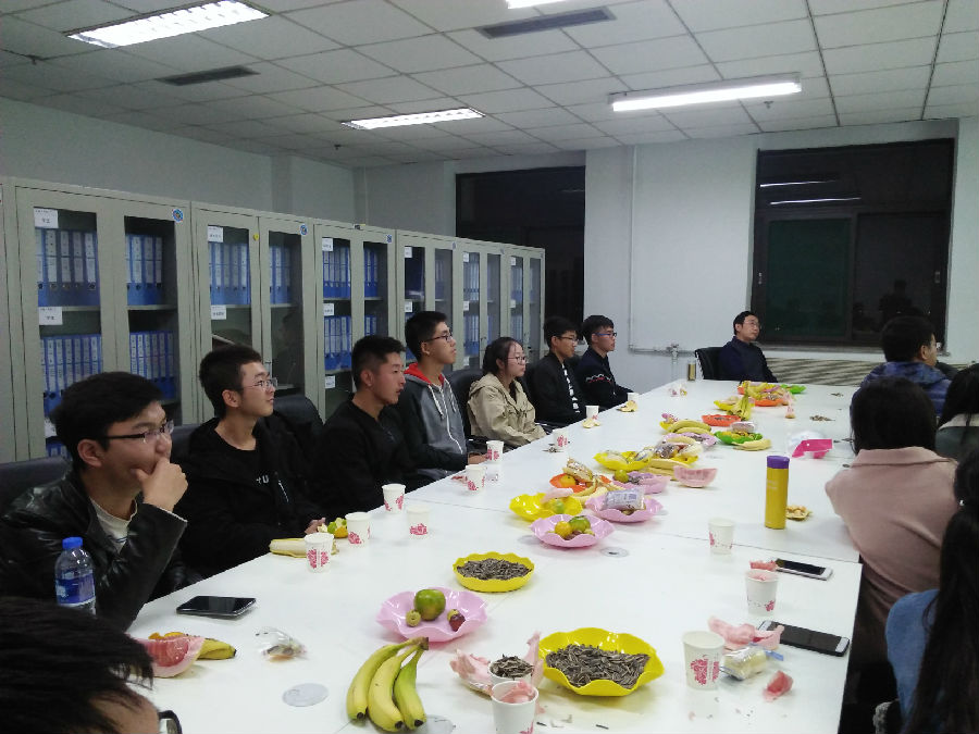 第一个环节,刘老师让大一的五名新同学进行了自我介绍,虽然刚刚进入大学,五名新同学并没有我们想象中的那么羞涩,在一一介绍之后。在座的高年级的同学也在刘老师的提议下进行了自我介绍。通过自我介绍,大家的话题明显增多,再加上刘老师之前精心准备的甜点和水果,气氛明显更加好了。