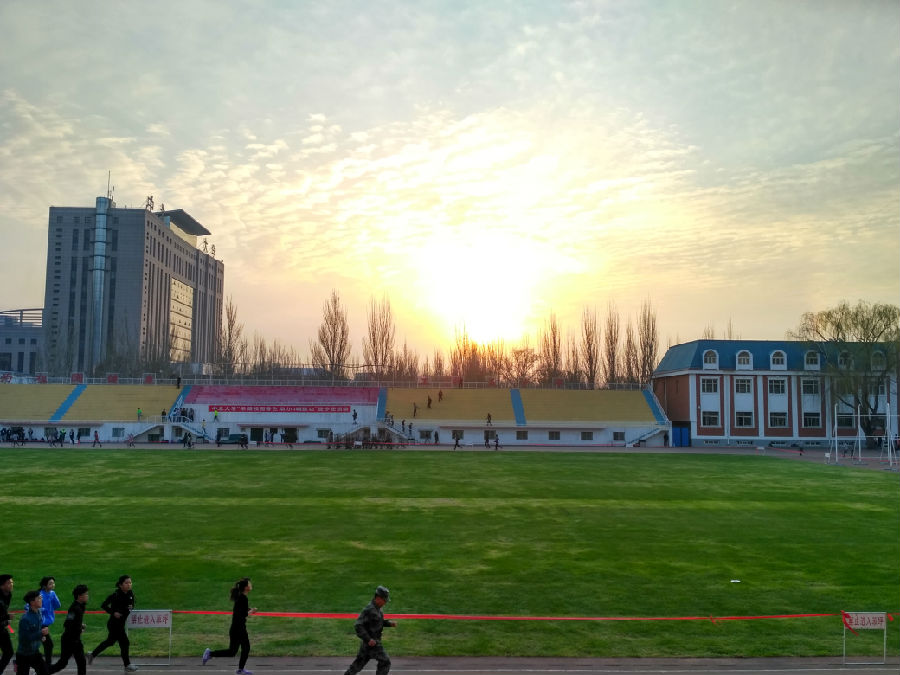 清明已殆,气候开始回暖,每日色彩愈发明丽的操场上,仍然吹有冰冷的春风。但清晨六点半,我们的长跑健儿便如约而至,开始超负荷的体能训练。为了六院,他们不在乎自己的疲倦,不在乎泪水和汗水,只在乎是否错过那清晨朝霞!他们心中只想着采撷着朝霞,努力前行。