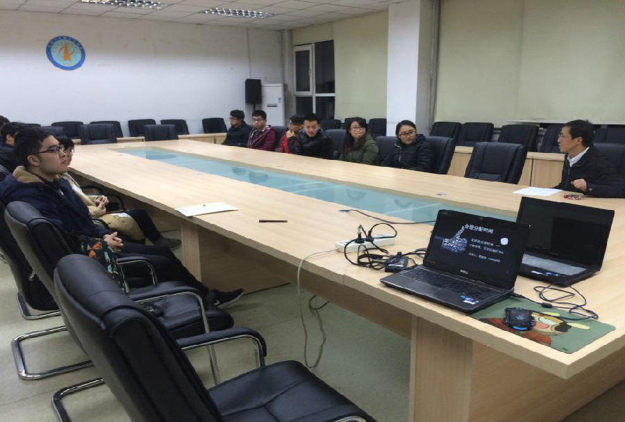 2016年12月17日晚上八点十五分,沈三民老师在14号楼4层会议室组织召开了主题为“大学生应该如何合理安排时间”的本科生导师班同学的见面会活动。