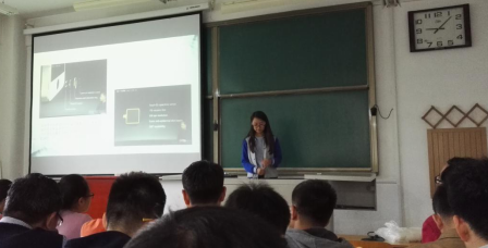第一位上台作报告的是闫文婧同学,她给大家带来的报告的主题是《电容式传感器在手机中的应用》。闫文婧是一位大三的同学,她在台上优雅的谈吐、大方的举止值得我们每一位同学学习。闫文婧同学此次报告从我们每个人的身边入手,贴近生活让我们更切实的感受到电容式传感器的存在及其为我们生活带来的便利。