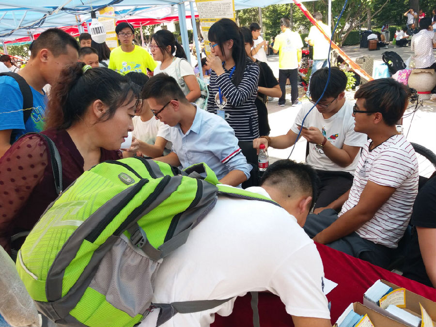 一天的迎新工作,志愿者同学们平均要在迎新点和新生宿舍之间往返十几趟。但看着家长们感动的笑容,听着学弟学妹们感激的话语,让他们感到既辛苦也充实。因为他们深信“接过你的行囊,我们就是一家人”。