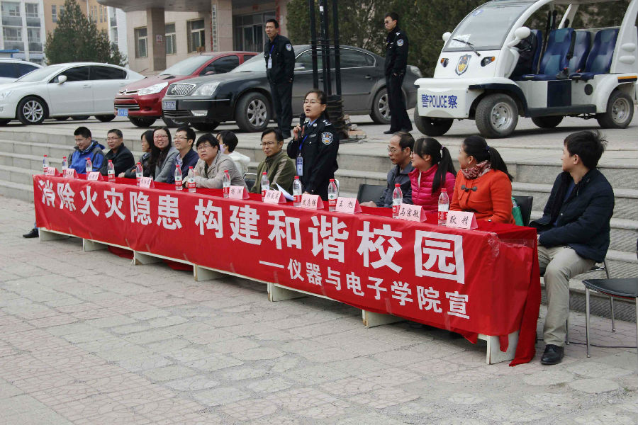 随后,学校领导对同学们进行了消防安全教育,杨湖、郭薇薇、史志强、王旭、李红霞等校领导出席。史老师现场教授了干粉灭火器的正确使用方法,同学们也在现场用灭火器进行灭火尝试,从而使同学们对救火设备有了充分的了解和认识。郭薇薇指出同学们表现出来的有序、快速和积极性已经充分体现了当代大学生的消防意识,并提出同学们平时要保持良好的消防安全习惯,禁止将火种带入人群密集的场所;当发生火灾时要第一时间拨打火警电话求救;面对火灾要冷静,不能慌乱,采取正确的自救措施。
