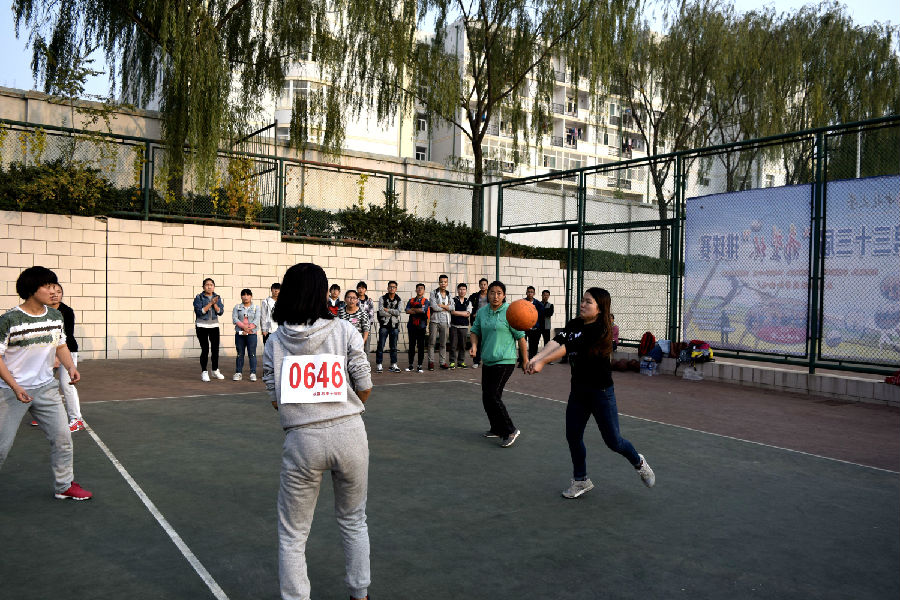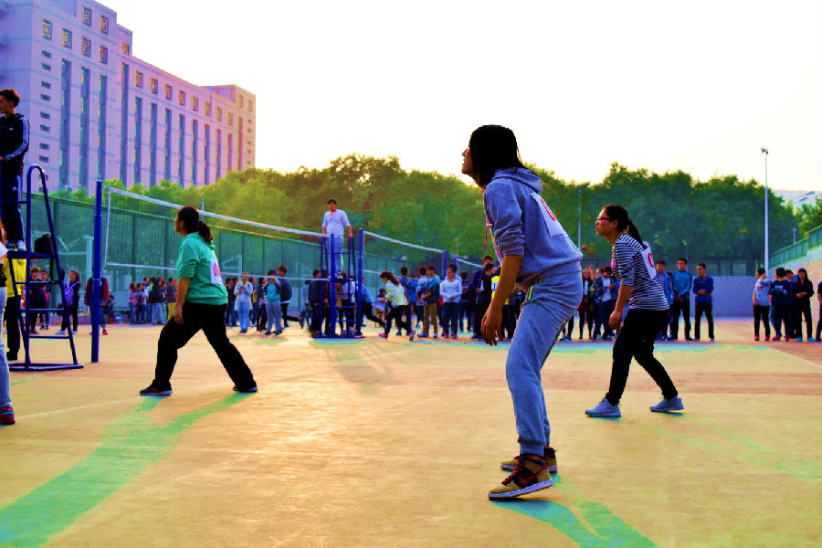 在短暂的练习之后比赛正式开始了,在第一局的比赛中,双方不分上下,比分你追我赶,一个又一个精彩的球,终于将比分打到了24:24,最后由于我院队员的紧张输了第一局比赛,接下来的俩场虽然没有第一场那么精彩,但女排们依旧发挥的很好,可能会因为紧张,出现了少许失误,输给了研究生院。