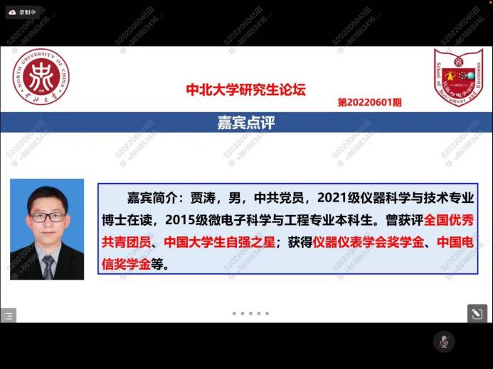 于2022年12月9日晚邀请2020级张锦涛同学做客研究生论坛,2021级博士贾涛进行论坛点评、2022级硕士马欣瑜做感受分享。