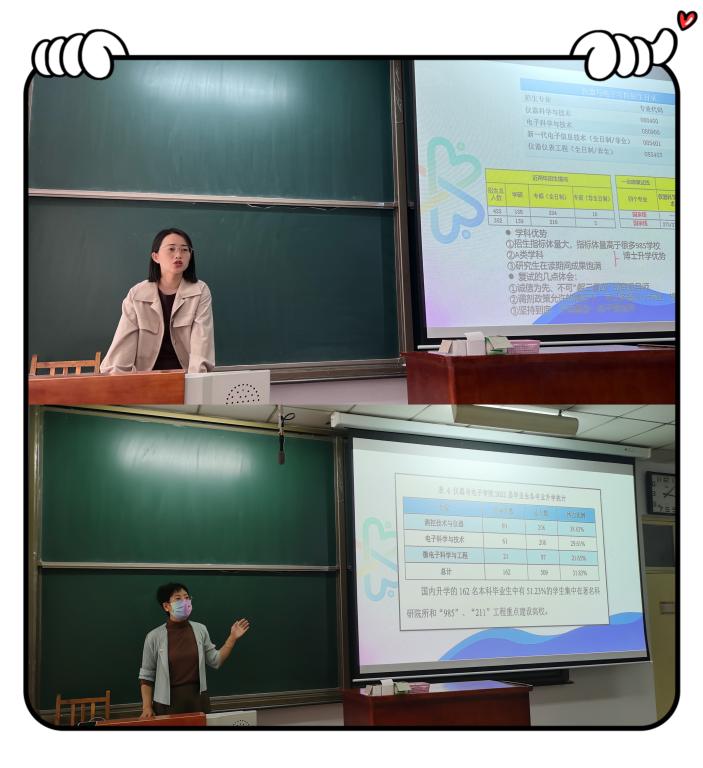 两场动员,均有专职就业辅导员李红霞主持。首先,由科研科负责硕士招生工作的韩卫利老师介绍我院学科优势、近两年招生情况以及复试过程中的注意事项;随后,李红霞老师分析了当前考研形势,介绍了各个专业近三年考研基本情况,强调了考研的重要性,鼓励热爱科研的同学们继续学习深造,并希望同学们考研征途上,能坚守初心、坚定信心、坚持恒心,最终一战成硕。