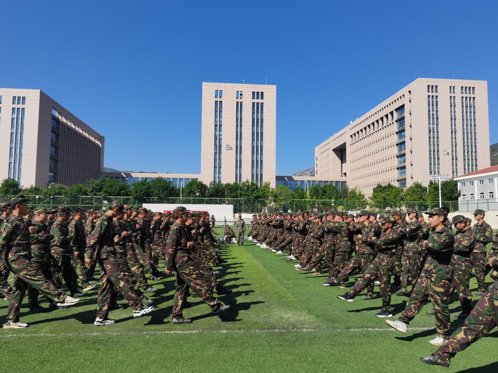 2023级新生在完成报到之后,军训作为大学第一课,开启了新生们的大学生活。9个班,组建成9个连队,通过军事技能培训、国防知识教育等各项训练培养良好的作风,磨练意志,上好大学的第一课。