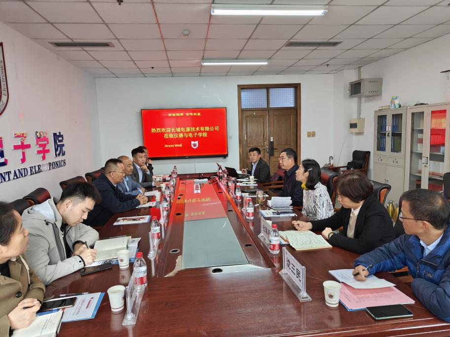 党委书记郝晓剑、院长刘文怡与长城电源技术有限公司常务副总经理马奇、副总经理杨韶慧、综合部经理靳君等围绕校企合作、产学研融合以及协同育人进行了深入沟通。