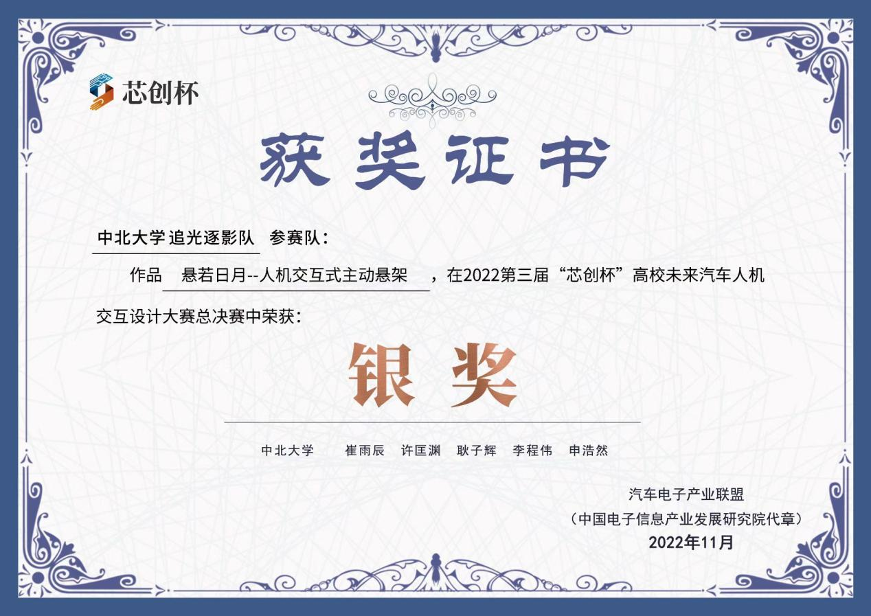 2023年,获第三届“芯创杯”高校未来汽车人机交互设计大赛本科组国家级银奖