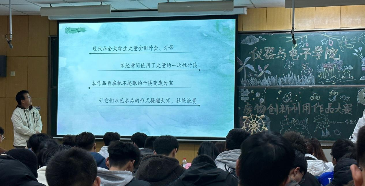 于2023年11月10日在主楼11309H教室举办废物创新利用作品大赛。本次活动旨在增强学生环保意识,营造校园环保文化氛围,提高学生创新精神和实践能力。大赛自启动以来,经过作品征集、中期检查两个阶段,从中筛选出九件最佳作品入围决赛。