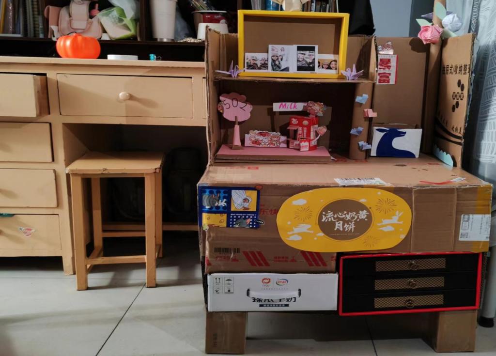 在同学们一双双巧手的加工创造下,一件件闲置物品“脱胎换骨”,变成具有新用途的手工作品。文韬九449宿舍利用废旧纸箱复刻校园主战坦克,散发出中北的军旅情怀;文韬九335宿舍则是制作了古罗马斗兽场模型,并命名为《落日余晖》,将世界优秀文化展现在我们面前;用同样的材料纸箱,文韬三502宿舍制作出了一个极具实用的梳妆台,受到了大家的广泛好评。此外,其他作品也不乏实用性、创造性和趣味性,制作精美的鸟巢、木制简易尤克里里、具有守护意义的纸壳机器人“酷酷小宝”、宿舍用简易茶几、深受男生喜欢的半场篮球架模型以及用一次性筷子精心制作的摩天轮样式作品《竹影轮回》,这些无不体现出仪电学子的创造性思维和废物再利用意识。