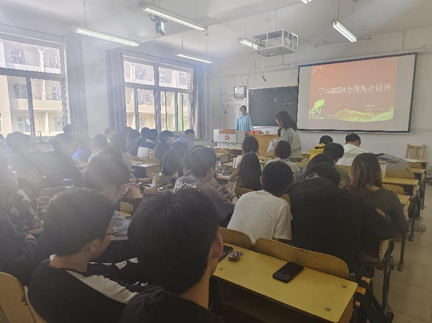 21060145班在10301Z举行“学习两会精神,做时代青年”主题班会。班级人生导师,离退休工作部党委书记、部长郭书杰莅临现场,深入到学生中,对两会精神进行了深度的剖析和解读。