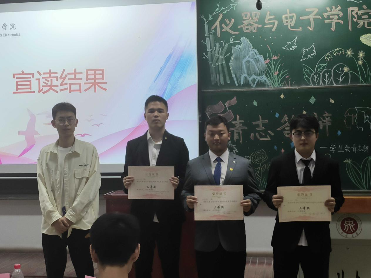 的青志部长,担任本次答辩的评委。答辩开始,全体同学起立共唱中国共产主义青年团团歌《光荣啊,中国共青团》。随后,两位主持人向各位评委详细阐释了本次答辩的评分标准。本答辩活动正式开始,九位答辩人依照顺序,轮番上台答辩。答辩结束后,经过工作人员核分,为获奖的班级颁奖。其中,2023级242班荣获一等奖,142班,143班荣获二等奖,441班,144班,243班荣获三等奖。