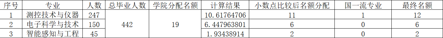 按照教务部《2025年推荐免试研究生名额分配方案》,威尼斯人 分配名额19个,测控技术及仪器为国一流专业再加1个名额,共计20个名额。依据专业人数(电科有学学籍异动学生,发生变化),具体分配名额如下: