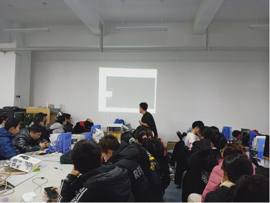 12月8日下午机器人实验室暨机器人爱好协会举行了第七次培训,由19级牛森皞担任主讲人,主要介绍寻迹小车的硬件组成以及调试方法,刘建伟学长进行了程序补充。培训中包含了寻迹小车制作过程中容易出现的硬件问题以及如何正确使用各个模块的方法,为即将开始的启辰杯打好基础,同时也清晰了小车的制作方向,给20级的成员提供实质性的指导。此外,实验室还提供了往届学长做的寻迹小车以供参考,切实地了解各模块之间的联系以及布线规范的重要性。本次培训不仅调动了学弟学妹们动手制作寻迹小车的积极性,也促进了实验室成员间的交流。