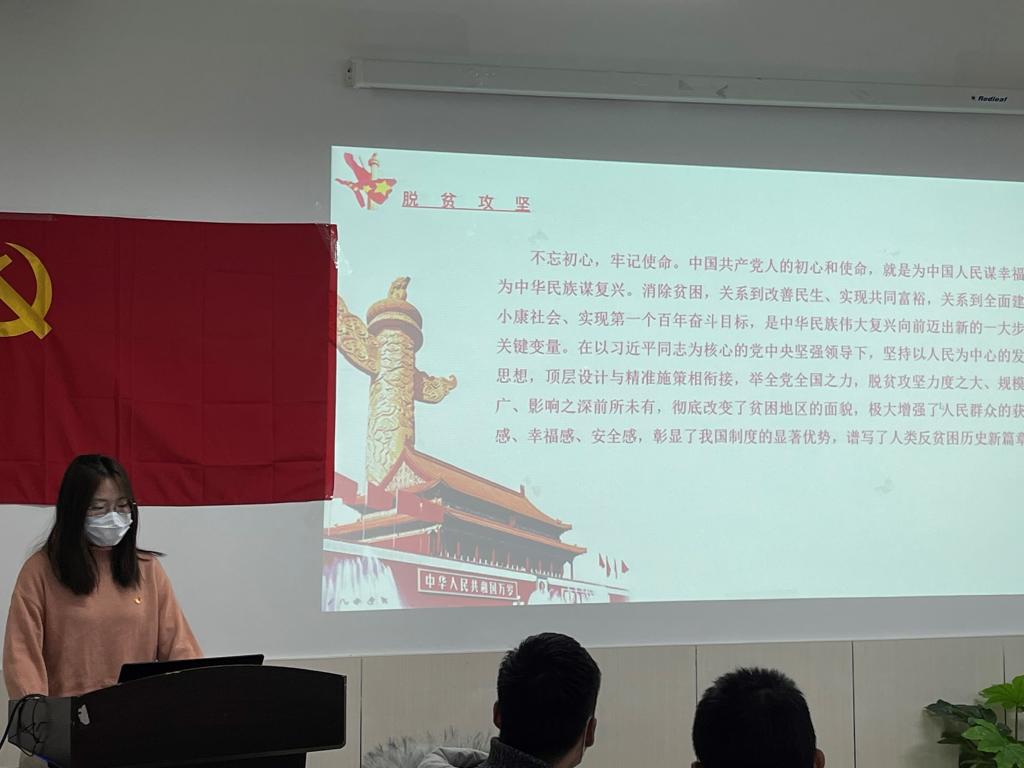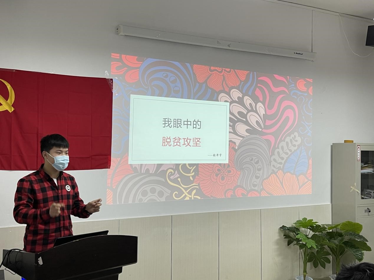 会议开始,副书记向大家介绍了习近平从严治党的一些相关内容,大家一起观看了有关脱贫攻坚的学习资料,并让参会的同学发表自己的看法。