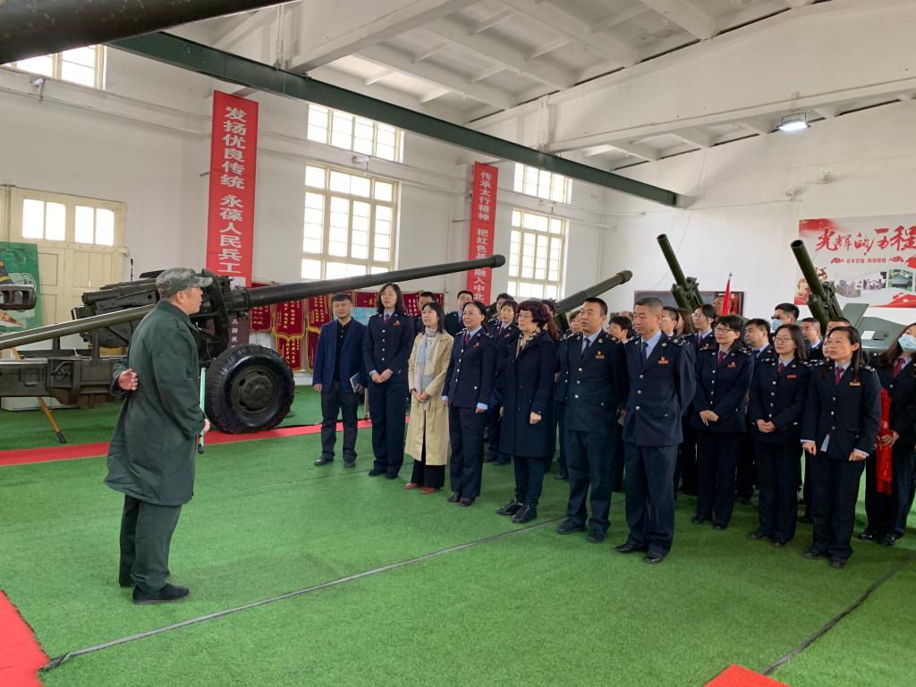 中北高新技术产业开发区党员同志一行首先来到学校军工文化园——火炮陈列室进行参观。在讲解员葛双喜老师的带领下,大家有序步入陈列室,认真观看了陈列的火炮等兵器,葛老师声情并茂、激情澎湃地对各种武器装备进行了讲解,并带领大家重温并朗诵了毛泽东主席的诗词《西江月·井冈山》。葛老师的讲述带领着大家又重新回到了抗日战争、解放战争那些岁月,再次点燃了大家传承革命精神,永葆革命斗志的蓬勃热情。