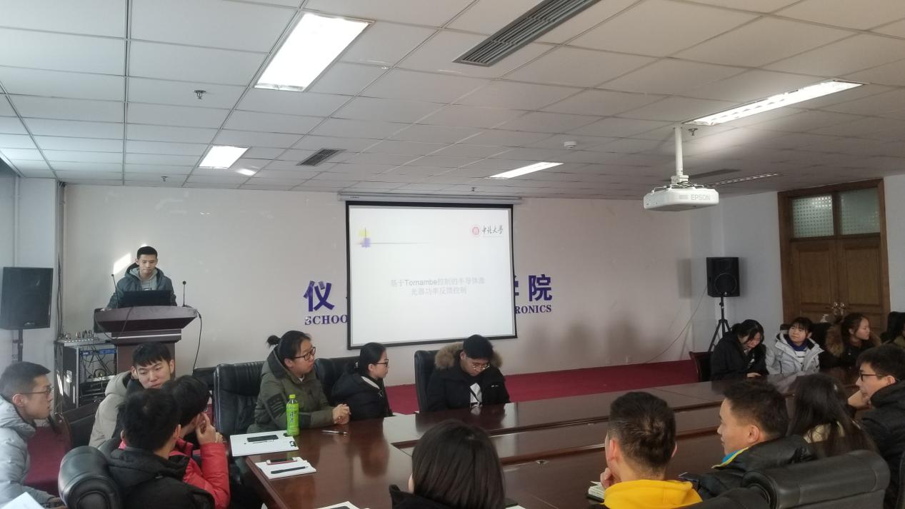 最后由研二学生张罗新,为大家进行了学术工作汇报,研三学生闫庆丰做补充。题目为“基于Tornambe控制的半导体激光器功率反馈控制技术”,报告中张罗新对近期所开展工作进行了分析、汇报和总结。汇报完成后,郝老师对张罗新的报告进行了点评,同时也为接下来的科研任务提出了建议,其他各组研究生也交流和分享了近期的研究工作,最后部署了研二同学的学位论文开题、毕业生中期答辩等具体要求。