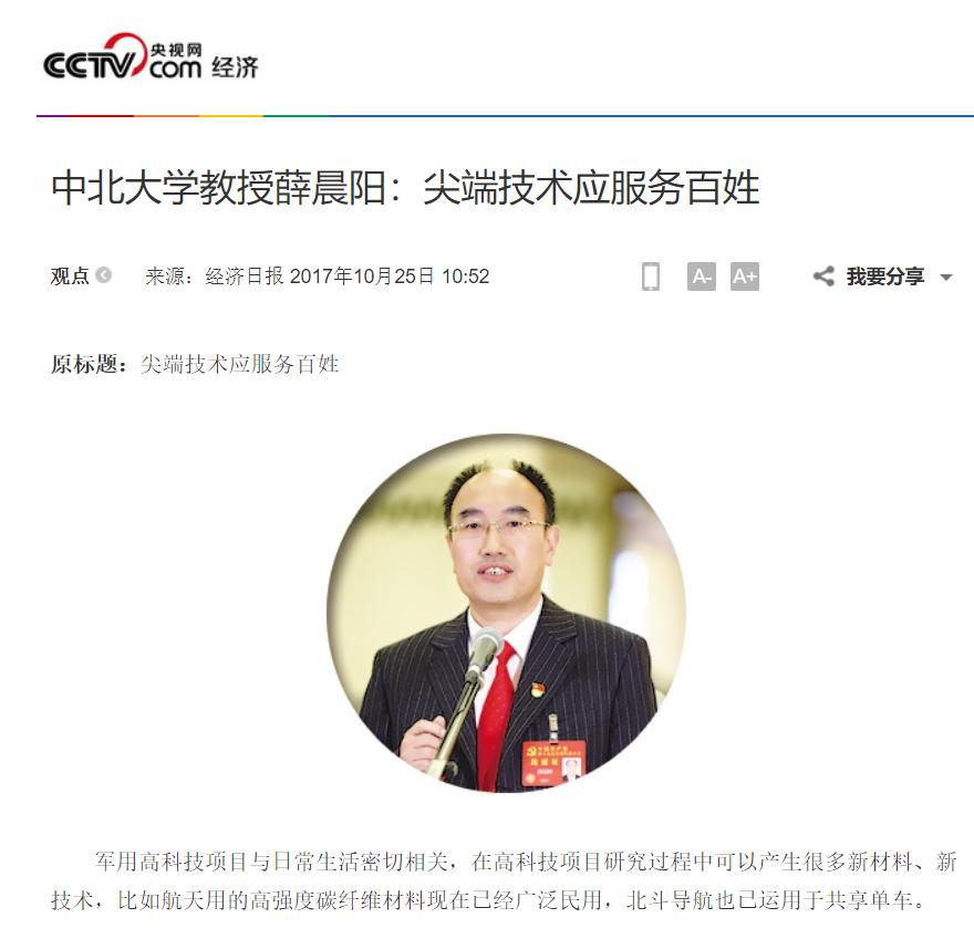 2017年10月25日,央视经济日报发布威尼斯人 教授薛晨阳:尖端技术应服务百姓