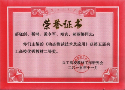 《动态测试技术及应用(第2版)》,主编郝晓剑,2015年获第五届兵工高校优秀教材二等奖。 |