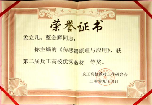《传感器原理与应用》,主编孟立凡等,电子工业出版社07年9月出版,2009年获兵工高校优秀教材一等奖。 |