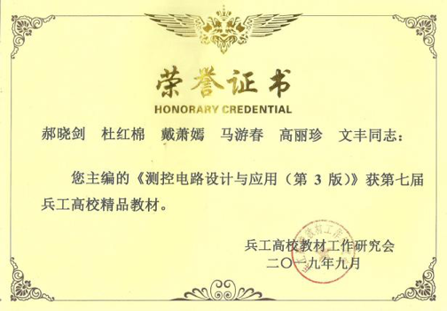 《测控电路设计与应用(第3版)》,主编郝晓剑,2019年获第七届兵工高校精品教材。 |
